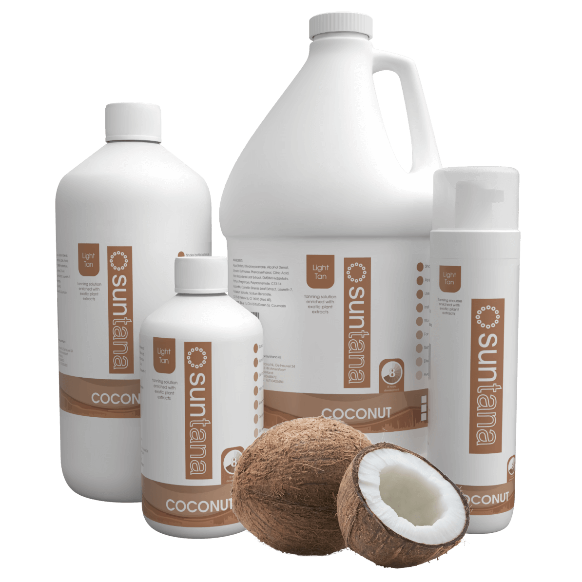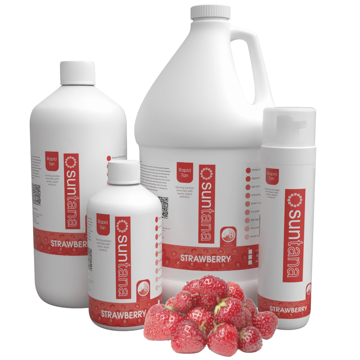 We hebben een uitgebreid assortiment professionele spraytan producten op voorraad; verkrijgbaar in natuurlijke tinten die langer meegaan, beter presteren en gelijkmatig vervagen. Met verschillende geuren, Coconut, Cherry, Chocolate, Blackberry en onze Rapid Tan-formule in Strawberry-Vanilla, kun je er mooi uitzien terwijl je de zintuigen worden geprikkeld. Elke geur heeft zijn eigen unieke DHA-sterkte, van onze lichtste kleur, Coconut, dat 8% DHA is, tot onze heerlijk donkere Blackberry ‘After Dark’ kleur met 14% DHA.